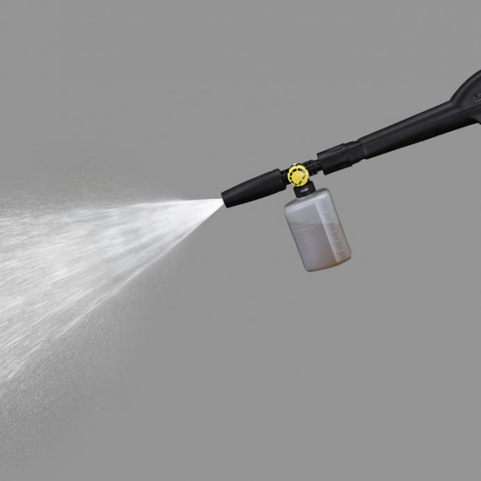 Duza de spumare FJ 6 cu spuma foarte puternica pentru curatarea usoara a tuturor suprafetelor, cum ar fi vopsea, sticla si piatra. Ideala pentru vehicule, gradini de iarna, mobilier de gradina, fatade, casa scarii, rulote, alei, pereti, jaluzele, terase, drumuri de acces, etc. Capacitatea aproximativa a recipientului este de 0,6 litri. Turnati detergent Kärcher direct in duza de spumare, atasati duza pe pistol si aplicati spuma. Doza de detergent poate fi ajustata usor de la duza de spumare (buton galben). Nivelul jetului poate fi ajustat la nevoie. Adecvata pentru toate curatitoarele cu apa sub presiune Kärcher Consumer clasa K 2 – K 7. Ideala pentru curatitoarele cu spuma Kärcher.
