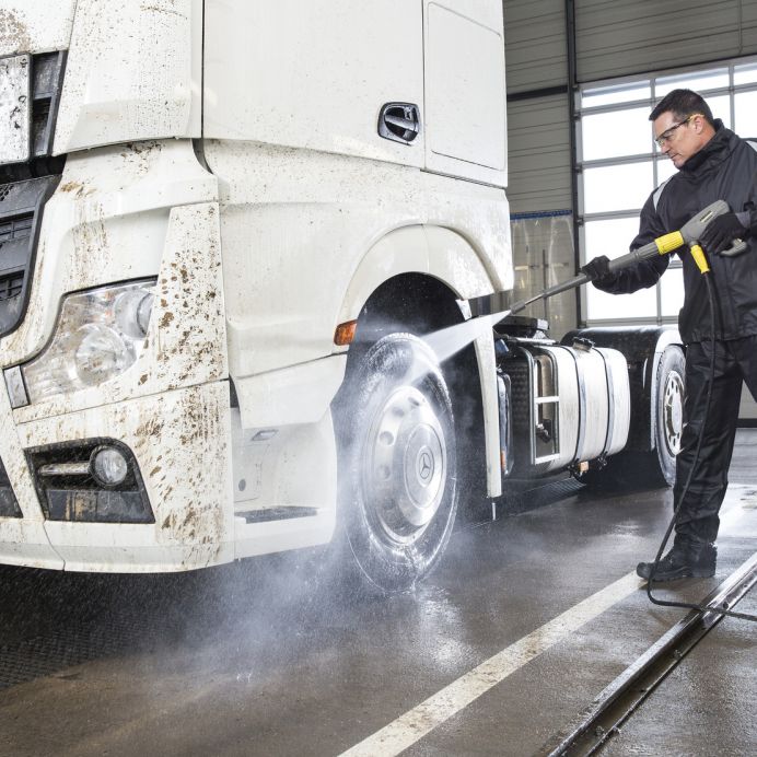 HD 9/20-4 M Plus: Aparatul de curatat cu inalta presiune, puternic, mobil cu motor cu 4 poli, trifazic, cu lance rotativa si furtun de preiune pivotant. Debitul de apa si presiunea de lucru pot fi reglate convenabil prin sistemul Servo Control direct de pe pistol.Manerul de impingere din aluminiu asigura manevrare usoara si poate fi folosit pentru stocarea accesoriilor. Datorita sistemului de schimbare rapida, sistemul de dozare al detergentului SwitchChem permite durate de functionare mari si flexibile cat si utilizarea a doi detergenti diferiti. Pistolul de presiune EASY!Force si sistemul EASY!Lock asigura utilizarea fara efort si asamblarea si demontarea rapida: in timp ce pistolul EASY!Force se foloseste de forta de recul a jetului de presiune pentru o forta de apasare cat mai mica, EASY!Lock permite eliberarea rapida a conectorilor facand utilizarea de cinci ori mai rapida fata de conectorii prin insurubare, fara a pierde din robustete sau dindurata de functionare. Pompa solida axiala cu trei pistoane cu capacul cilindrului de alama asigura o durata de functionare mare.
