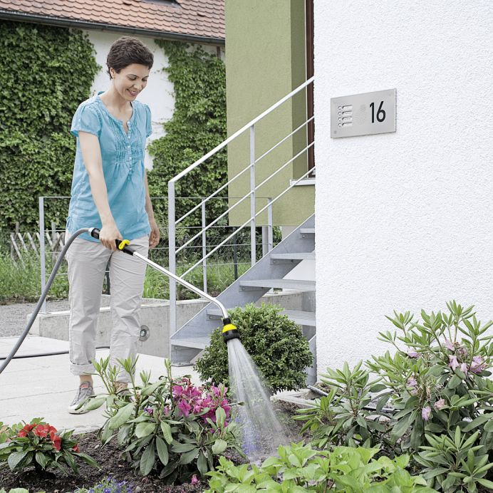 Lancea ergonomica de pulverizare Karcher combina designul perfect si caracterul practic. Pentru utilizarea versatila in gradina lancea de pulverizare este ideala pentru irigarea gradinilor mici si medii. Combinatia perfecta a elegantei, a caracteristicilor de prima clasa si a designului ergonomic perfect face lancea de pulverizare de la Karcher ideala pentru irigarea fara efort chiar si pe pererioade mai indelungate. Pe scurt: solutia ideala pentru numeroase utilizari in gradina. Nota: duzele de pulverizare de la Karcher si lancile sunt compatibile cu toate sistemele de prindere disponibile. Caracteristici: control debit practic cu o singura mana (inclusiv functia ON/OFF), materiale robuste si 6 moduri de pulverizare.