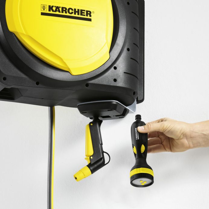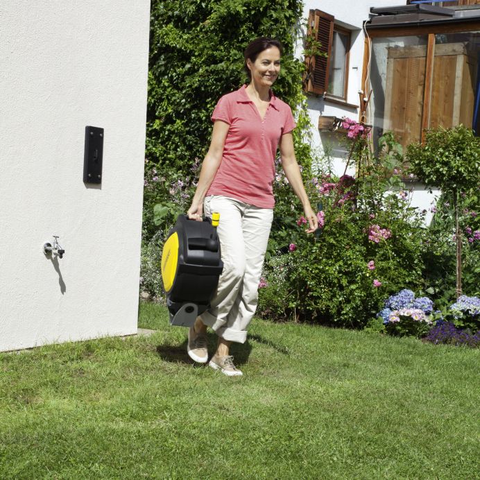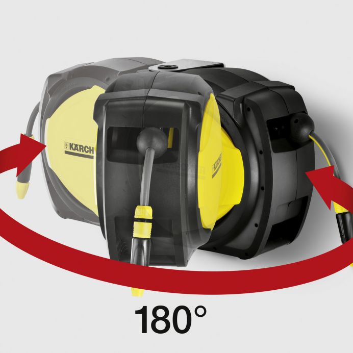 Furtunurile pot fi rapid si simplu infasurate si desfasurate fara formarea de noduri cu suportul cu furtun compact Premium CR 7.220 Retragerea furtunului este automata si uniforma.Tamburul pentru furtun automat dispune de o frana pentru furtun integrata care asigura retragerea controlata a acestuia. Cutia de furtun poate fi montata intr-un spatiu minim datorita dimensiunilor sale compacte si a consolei de perete plate. In plus, intervalul axului de 0º - 180º poate fi ajustat individual cu un dispozitiv de fixare a unghiului. Acest lucru face posibila protejarea eficienta a obiectelor si peretilor.