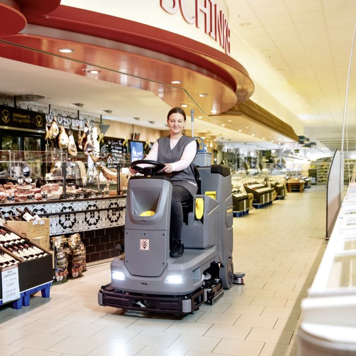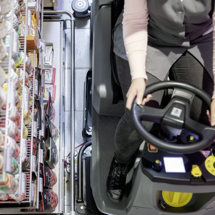 B 110 R impresionează în timpul curățării de întreținere zilnică cu tehnologia dovedită a periei cu disc, lățimea de lucru de 75 centimetri și o punte de spălare laterală atașată, care extinde lățimea de lucru cu 10 centimetri și permite curățarea aproape de margini. Bateria sa puternică de 170 Ah, care este încărcată convenabil prin intermediul încărcătorului integrat, rezervoarele de 110 litri și dozarea apei în funcție de viteză, permit intervale lungi de lucru. Ca urmare, sunt posibile performanțe de suprafață de 5100 m². Sistemul de dozare a agentului de curățare Dose, funcția de umplere automată pentru umplerea economisitoare de timp a rezervorului de apă curată și sistemul de clătire automată a rezervorului pentru rezervorul de apă murdară asigură, de asemenea, o curățare ecologică, eficientă și convenabilă. Mașina este conectată la sistemul nostru de gestionare a flotei Kärcher Fleet pentru monitorizarea tuturor datelor relevante ale mașinii. Mașina este foarte ușor de operat și are, de asemenea, sistemul de taste KIK pentru atribuirea individuală a drepturilor de acces la parametrii cheie ai mașinii.