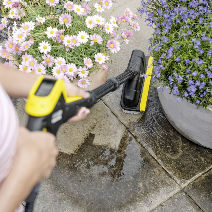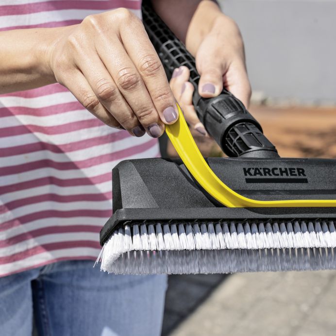 Peria PS 30 asigură rezultate de curățare strălucitoare pe o mare varietate de suprafețe. Acest lucru este asigurat de 3 duze de înaltă presiune care indeparteaza murdăria persistenta. Acest lucru face ca PS 30 să fie ideal pentru curățarea fiabilă a zonelor mici și mijlocii, cum ar fi scările și marginile. Capul periei poate fi rotit la 360° pentru a ajunge în locuri greu accesibile. Toate suprafețele netede pot fi curatate cu lamela integrată care indeparteaza apa murdara. În acest fel, excesul de apă reziduală este îndepărtat rapid și suprafețele pot fi utilizate din nou imediat. Peria PS 30 este compatibila cu toate aparatele de spalat cu presiune Kärcher din clasele K 2 până la K 7.