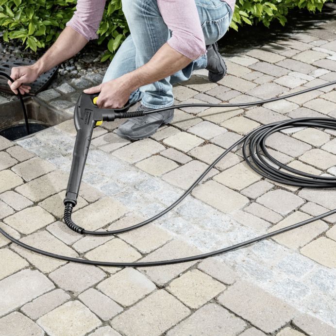 Set de curatare conducte cu furtun de 7,5 m pentru desfundarea conductelor, canalelor de scurgere, burlanelor de scurgere si toaletelor. Patru jeturi directionate spre spate deplaseaza furtunul incet prin conducta pentru a curata blocajul. Marcarea continua si inelul de marcare arata progresul solutiei din conducta. Furtun flexibil din impletitura textila de calitate cu lungimea de 7,5 m cu duza suplimentara scurta din alama pentru deplasarea cu usurinta in conducta. Cu manson anti-rasucire si conector din alama pentru durabilitate. Adecvat pentru casa si exterior cu toate curatitoarele cu apa sub presiune seriile K 2 – K 7.