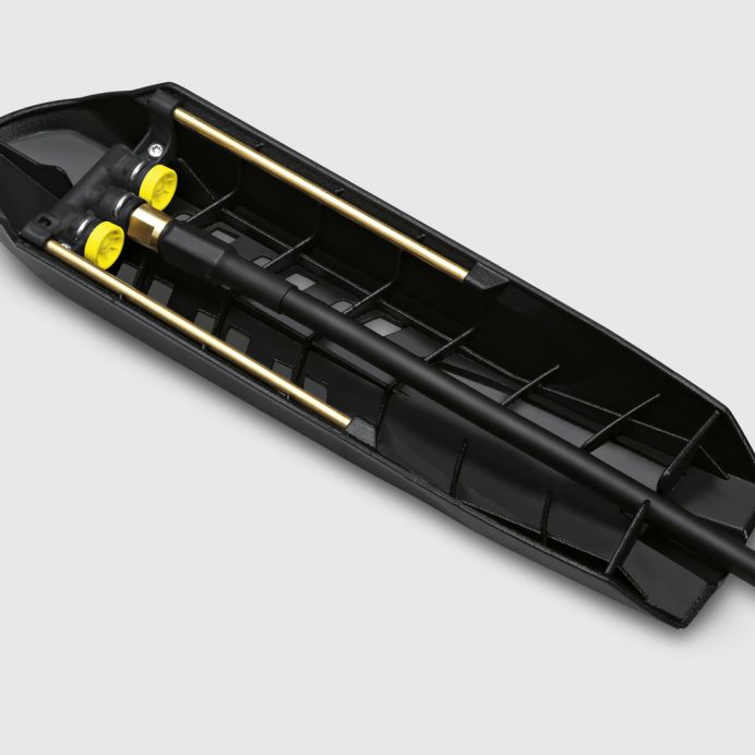 Solutie inteligenta 2-in-1 pentru curatarea jgheaburilor si a conductelor infundate sau a tevilor de scurgere! Kitul inovator de curatare jgheaburi si conducte Kärcher lucreaza singur – cu inalta presiune. Se misca independent pe o sanie, prin jgheaburi, fara ca utilizatorul sa fie nevoit sa stea in permanenta langa el pe scara. Kitul de curatare jgheaburi si conducte este prevazut cu doua duze diferite: o duza de curatare a conductelor cu patru jeturi cu inalta presiune directionate spre spate si o duza de curatare a jgheaburilor pentru montarea furtunului pe sanie. Utilizatorul poate comuta rapid si usor intre aplicatii, in orice moment. Un furtun fara rasucire cu conector de alama asigura durabilitatea acestuia. Furtunul are o lungime de 20 m. Kitul de curatare jgheaburi si conducte este adecvat pentru curatitoarele casnice cu apa sub presiune seriile K 2 – K 7.