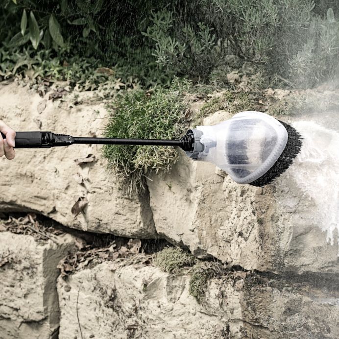 Perfect pentru curățarea colțurilor și marginilor, protecția împotriva stropirii, special concepută pentru aparatele de spalat cu presiune Kärcher, K2 până la K7. Protejează eficient operatorul și zona înconjurătoare împotriva apei pulverizate. Designul transparent asigură o vedere clară asupra zonei care trebuie curățată în orice moment. Este de la sine înțeles că accesoriul este compatibil cu toate noile lanci de pulverizare, lance Vario cu jeturi multiple precum și cu noile lanci rotative. (Nu este compatibil MP 4 și MP 180 5-în-1 (2.643-238.0, 2.643-239.0))