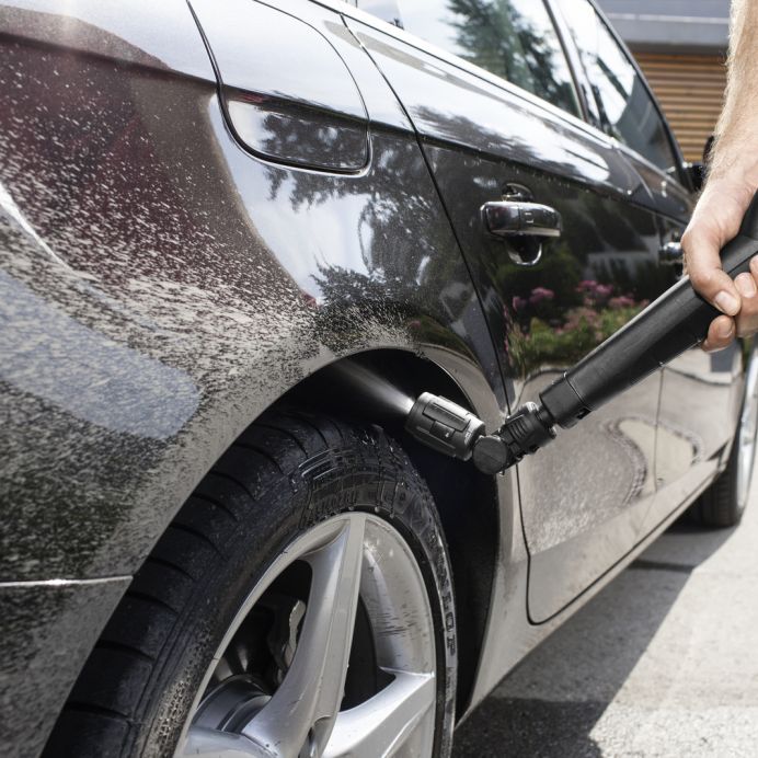 Lancea scurtă ușoară Vario Power Jet 360° cu reglare a presiunii şi articulaţie flexibilă și reglabilă la 360°, este ideală pentru curăţarea zonelor greu accesibile.